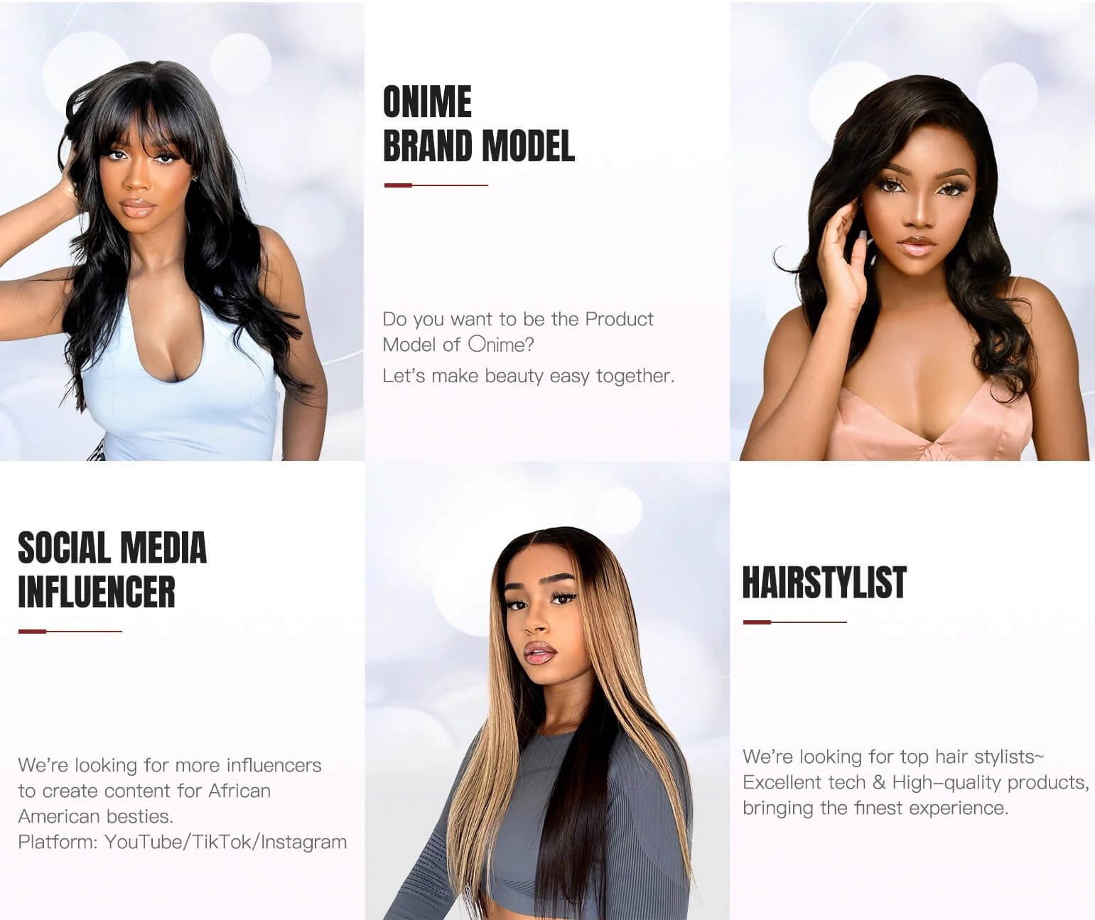 Drop us an email and let your talent shine with ONIME HAIR ♥