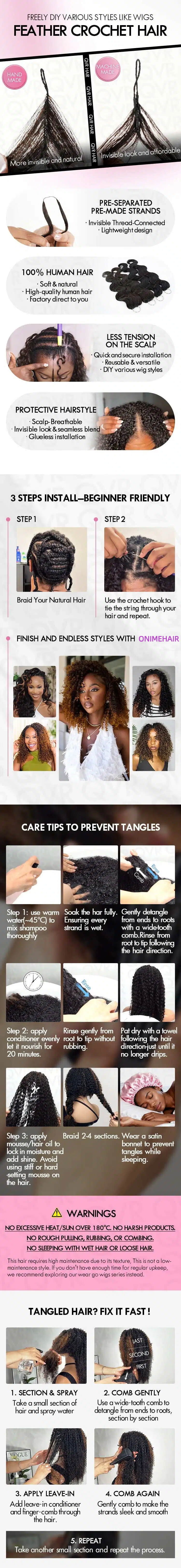 Onimehair™ 1 Pack/50g Handmade Feather Crochet Braid Natural Black Human Hair Extensions