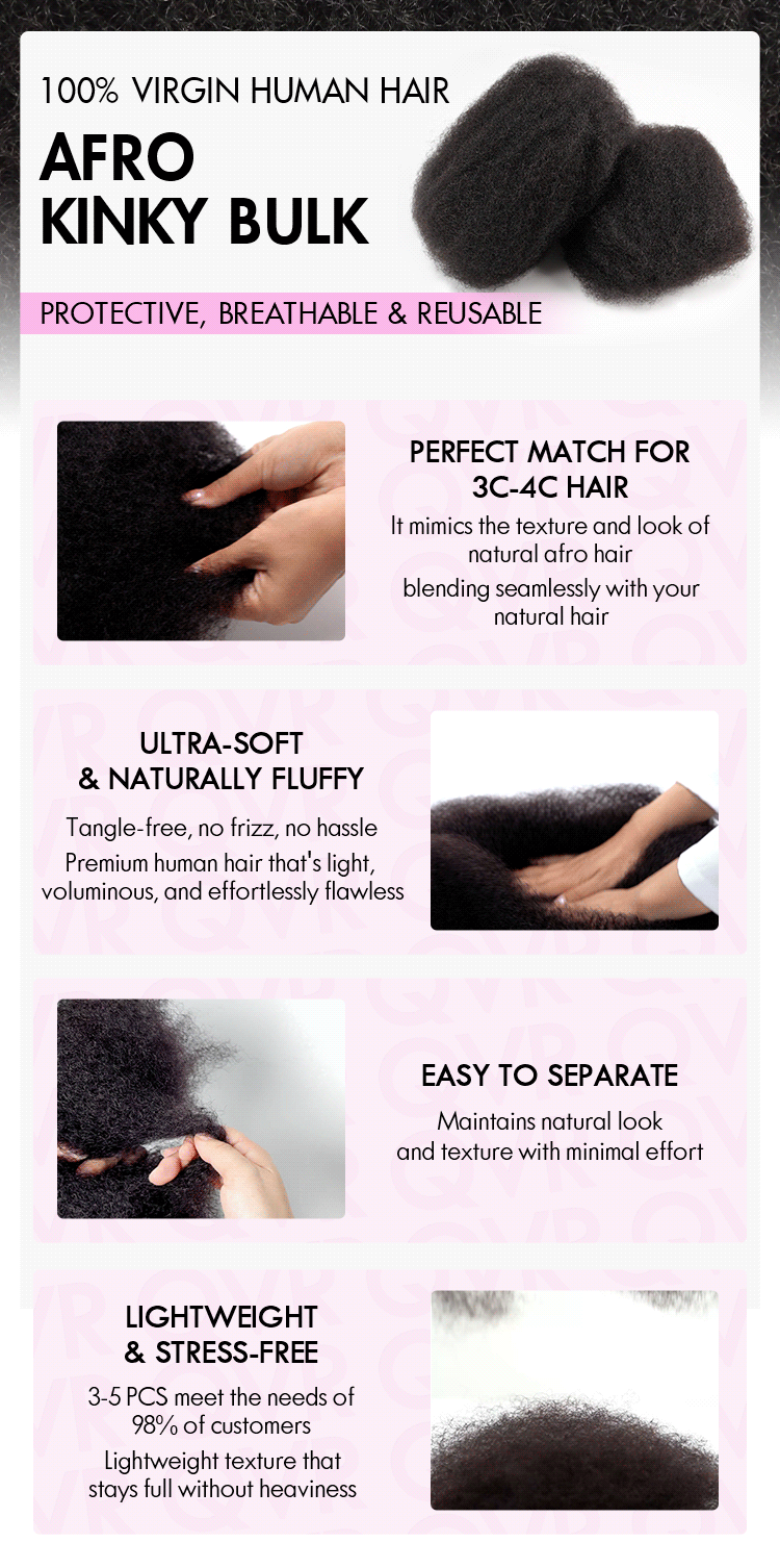 Onimehair™ Brown Color Afro kinky Bulk Hair Extensions For Braiding Dreadlock Human Hair
